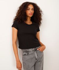 Blusa desenvolvida em malha flamê de algodão. A peça tem modelagem reta, com caimento super confortável e soltinho ao corpo. O modelo tem decote redondo e mangas curtas.