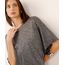 Blusa feminina confeccionada em malha lurex com fios metalizados que acrescentam brilhos a peça. A peça tem modelagem reta e caimento solto ao corpo, com comprimento encurtado. O modelo tem decote redondo e mangas curtas amplas. Detalhe de acabamento simples na barra.