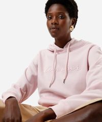 Blusa feminina confeccionada em moletom felpudo. A peça possui gola redonda com capuz aplicado e cordão para ajustes, mangas longas, bordado escrito "amour" aplicado na parte frontal, bolso frontal modelo canguru, caimento reto e acabamento canelado. Composição: 59% algodão 41% poliéster Modelo veste: P Medidas da modelo - Altura: 1,73m Busto: 86cm Cintura: 70cm Quadril: 101cm. Instruções de lavagem: - Lavar à temperatura máxima de 40ºC - Proibido o alvejamento - Não secar em tambor - Secagem em varal por gotejamento - Não passar - Não lavar à seco - Limpeza à úmido processo normal
