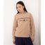 Blusa confeccionada em moletom. Possui caimento solto, decote redondo canelado e mangas longas com punho canelado. Possui estampa de escrita e sua barra é canelada.