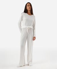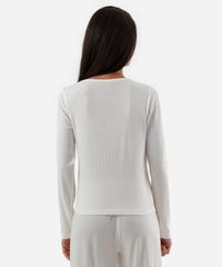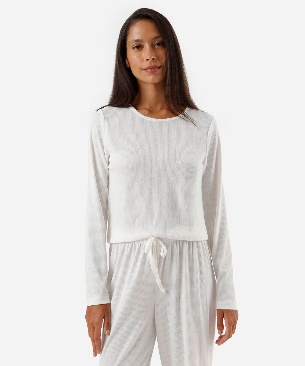 blusa de pijama avulsa feminina manga longa texturizada off white