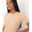 Blusa confeccionada em malha tricot com textura canelada e toque macio. A peça possui gola careca, mangas curtas, caimento levemente ajustado ao corpo com acabamento canelado.