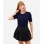 Blusa confeccionada em malha tricot com textura canelada e toque macio. A peça possui gola careca, mangas curtas, caimento levemente ajustado ao corpo com acabamento canelado.