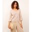 Blusa feminina confeccionada em tricot com viscose e padronagem de folhagens com fios de lurex que criam efeito de brilhos. A peça tem modelagem reta e caimento solto ao corpo. O modelo tem decote em V e mangas 3/4. Detalhe de acabamento canelado nos punhos, barra e decote.