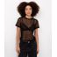 Blusa confeccionada em trico bem leve, com pontos abertos que conferem transparência. A blusa tem caimento solto, decote redondo, mangas curtas e barra pespontada.