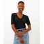 Blusa feminina confeccionada em tricot com toque macio. A peça possui modelagem reta com caimento levemente solto, decote redondo, mangas curtas, detalhe texturizado nos ombros e recortes frontal, acabamento canelado.