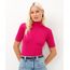 Blusa confeccionada em tecido de tricot com toque macio. A peça possui modelagem reta com caimento justo ao corpo, gola alta, mangas curtas e acabamento canelado.