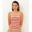 Blusa confeccionado em tricot com padronagem listrada. Possui modelagem reta, comprimento regular, decote reto sem alça e acabamento em pesponto.