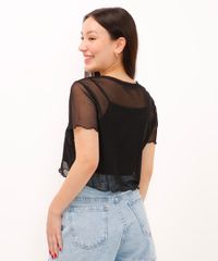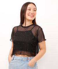 • Conjunto de duas peças: blusa cropped em tule e top de alças finas para usar por baixo.