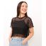 • Modelagem cropped com mangas curtas e decote redondo, super em alta.