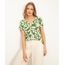 Blusa confeccionada em malha texturizada com estampa de folhagem. A peça possui decote V, mangas curtas, caimento reto e confortável com acabamento pespontado.