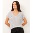 Blusa confeccionada em tecido com toque leve. A peça possui modelagem reta com caimento solto, decote V, mangas curtas, detalhe de pequena fenda nas laterais, tecido texturizado, padronagem listrada e acabamento pespontado.