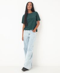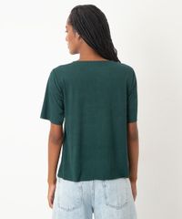 blusa em suede manga curta com recortes marrom - verde esmeralda