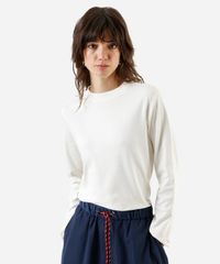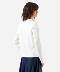 Blusa feminina confeccionada em malha de algodão peruano. A peça tem a modelagem reta e o caimento é confortavelmente solto ao corpo. O modelo tem gola redonda canelada e as mangas são longas com acabamento pespontado nos punhos e na barra. ALGODÃO PERUANO Produto feito com algodão premium. Produzido no Peru, é considerado uma das melhores fibras do mundo. Possui toque super macio, trazendo melhor conforto e qualidade. Composição: 100% algodão peruano Modelo veste: P/38 Medidas da modelo: Altura: 1,73 m Busto: 80 cm Cintura: 61 cm Quadril: 90 cm Instruções de lavagem: - Temperatura até 40º - Não alvejar - Não secar em secadora - Secar na vertical - Passar em temperatura mínima - Não lavar a seco - Limpar a úmido