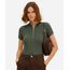 blusa feminina canelada com zíper de argola manga curta gola alta verde