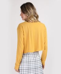Blusa feminina desenvolvida em malha. Modelagem ampla com comprimento curto. Estampa frontal com o texto "Insert your text". Mangas longas e decote redondo.