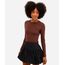 Blusa feminina confeccionada em malha macia de algodão com leve textura canelada. A peça tem a modelagem e construção reta e o caimento é confortavelmente ajustado ao corpo. O modelo tem decote redondo e mangas longas. Detalhe de acabamento pespontado na barra e punhos.