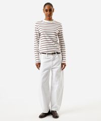 blusa feminina de algodão peruano manga longa listrada off white
