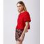 blusa feminina de jacquard manga bufante floral mindset vermelha