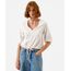 Blusa feminina confeccionada em malha laise. A peça tem a modelagem e construção reta e o caimento é confortavelmente ajustado ao corpo. O modelo tem decote V e mangas bufantes com elástico embutido nos punhos. Detalhe de acabamento com tiras para amarração na barra.