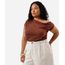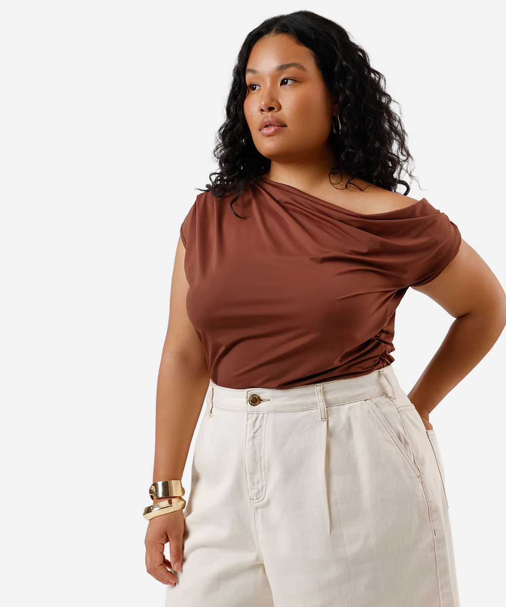 blusa feminina de poliamida assimétrica franzida plus size marrom