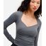 Blusa feminina confeccionada em malha de poliamida. A peça tem a modelagem e construção reta, caimento é confortavelmente ajustado ao corpo e franzidos laterais que modelam a silhueta. O modelo tem decote coração e mangas longas. Detalhe de acabamento pespontado na barra.