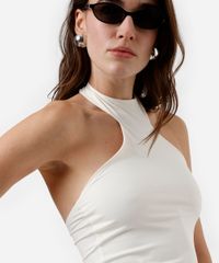 blusa feminina de poliamida halterneck off white