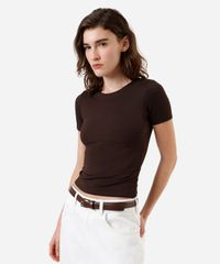 blusa feminina de poliamida manga curta marrom