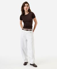 • Decote redondo clássico e mangas curtas, tornando a peça um item coringa no guarda-roupa.