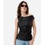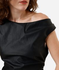 blusa feminina de poliuretano franzida preta