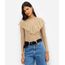 blusa feminina de renda com babado floral bege