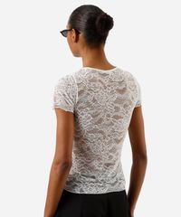 blusa feminina de renda manga curta off white