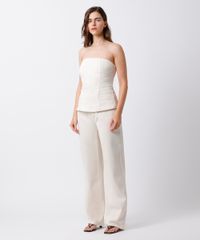 blusa feminina de sarja sem alça com nervuras e fenda mindset off white