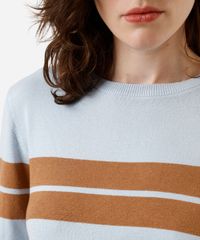 blusa feminina de tricot manga curta listrada azul