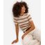 blusa feminina de tricot manga curta texturizada listrada bege