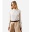 Blusa feminina confeccionada em tecido plano de viscose bordado. A peça tem a modelagem e construção reta e o caimento é confortavelmente solto ao corpo. O modelo tem decote redondo, abertura posterior por botão e mangas longas com botão nos punhos. Detalhe de acabamento com renda aplicada no decote e nos punhos.