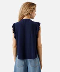 blusa feminina de viscose com babados texturizada azul