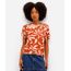 Blusa feminina confeccionada em malha de viscose com padronagem floral. A peça tem a modelagem reta e o caimento é confortavelmente solto ao corpo. O modelo tem decote redondo e mangas curtas com martingales e botões. Detalhe de acabamento pespontado na barra.