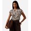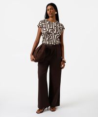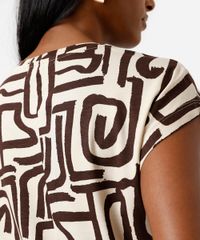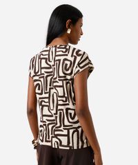 blusa feminina de viscose manga curta geométrica bege