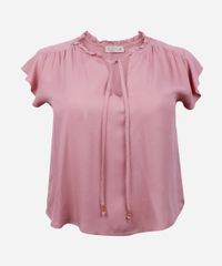 Esta blusa plus size é a escolha ideal para quem busca uma peça versátil e cheia de charme. Confeccionada em tecido plano de viscose, ela proporciona um toque suave e um caimento fluido que valoriza o conforto em todos os momentos. Seus detalhes românticos, como os babados e a amarração no decote, transformam um item essencial em uma peça especial para o seu guarda-roupa.