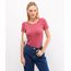 Blusa feminina confeccionada em malha de viscose com textura canelada. A peça tem modelagem reta e caimento levemente ajustado ao corpo. O modelo tem decote redondo e mangas curtas. Detalhe de acabamento pespontado na barra.