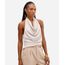 blusa feminina frente única franzida texturizada bege