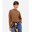 blusa feminina texturizada básica manga longa marrom