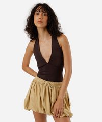 blusa frente única feminina com franzido marrom