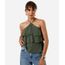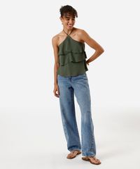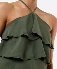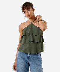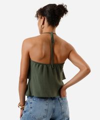 blusa halterneck feminina com babados texturizada verde