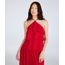 Blusa feminina confeccionada em tecido texturizado com toque leve. A peça possui modelagem bata com caimento solto, decote halterneck com cordão para amarração, babados frontais e acabamento pespontado.