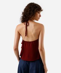 • Decote halter neck com cordão para amarração posterior, que valoriza a região dos ombros e costas.