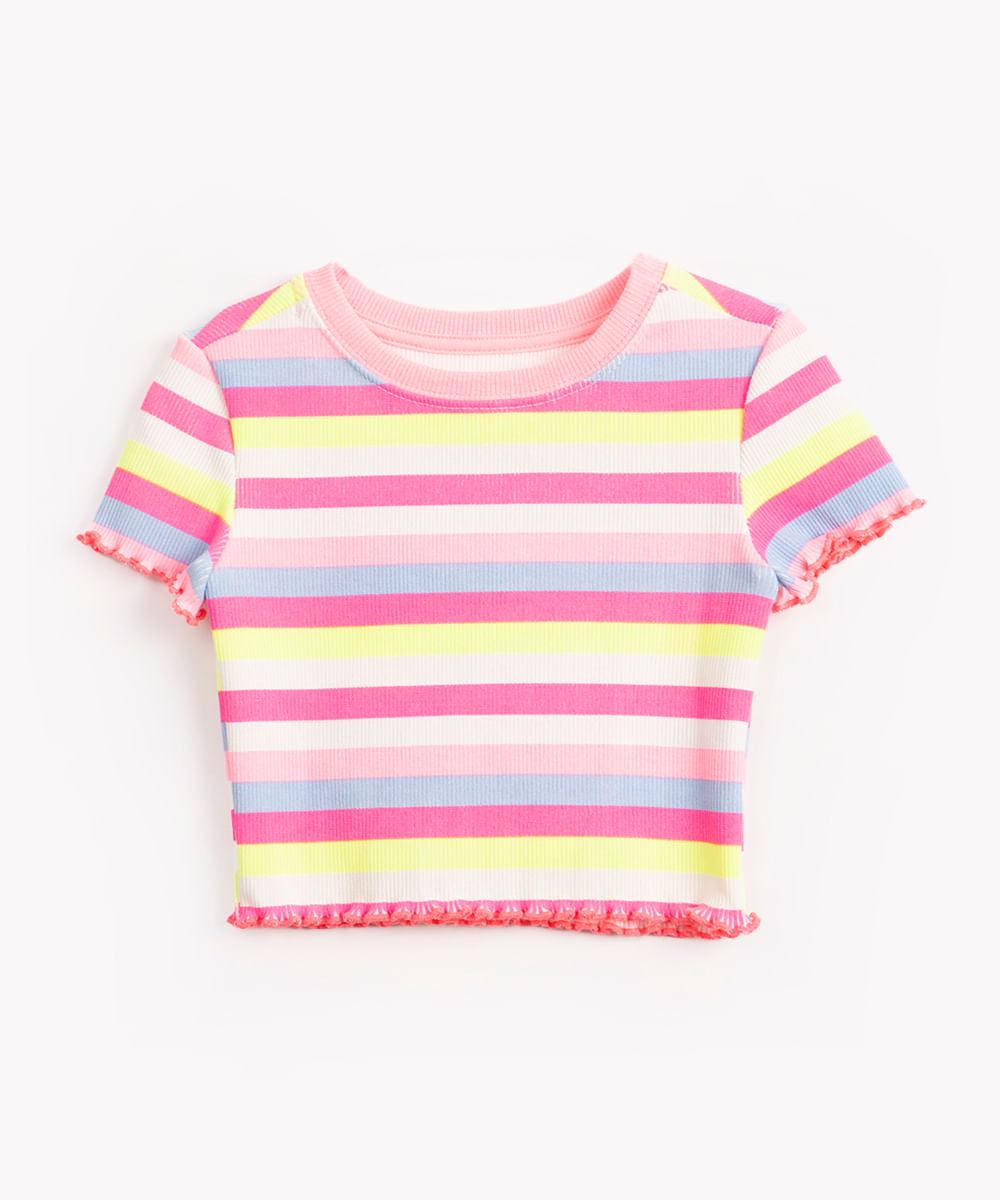 • Estampa listrada com cores vibrantes, trazendo um ar divertido e cheio de energia.