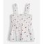 Blusa infantil confeccionado em tecido plano de algodão com estampa floral. A peça tem modelagem reta, caimento solto ao corpo com lastex aplicado na parte superior formando franzidos. O modelo tem decote quadrado e alças finas. Possui acabamento pespontado na barra.