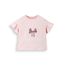 Blusa infantil confeccionada em algodão com toque macio. Possui modelagem reta, caimento solto, gola redonda de toque canelado,mangas curtas em babados, estampa frontal com laço de paetês bicolor e reversíveis. Acabamento pespontado.